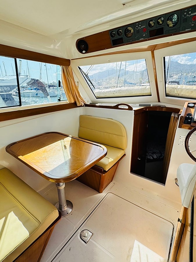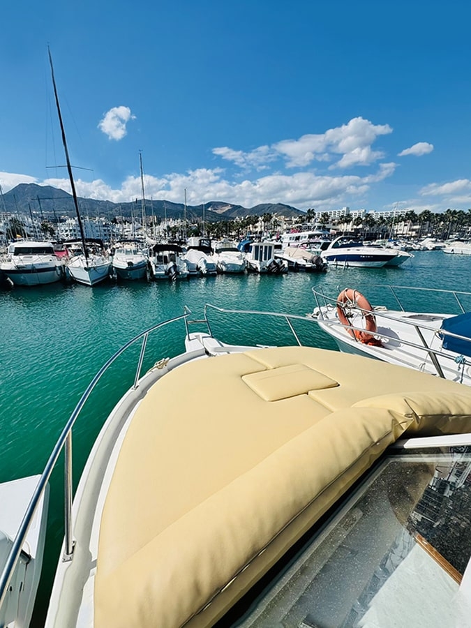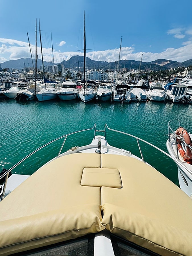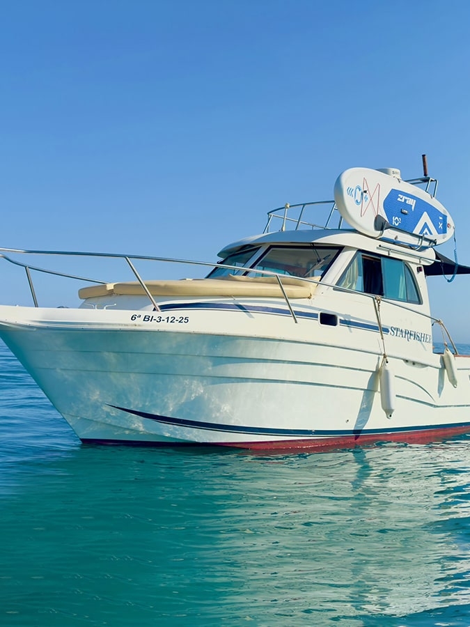 Vous cherchez une façon exclusive de vivre la mer, sans complications ? Profitez d’une location de bateau avec skipper sur la Costa del Sol à bord de notre impressionnant Starfisher 840. Avec ses 9 mètres de longueur, sa largeur de 3,03 mètres et son design à deux niveaux, ce bateau est l’option idéale pour celles et ceux qui recherchent de l’espace à bord et la tranquillité que seule une équipe professionnelle peut offrir. Capacité jusqu’à 10 personnes.