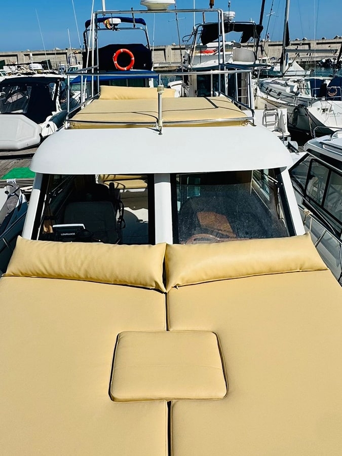 - Double solarium : détendez-vous sur les matelas à l’avant ou montez sur le flybridge (pont supérieur) pour profiter des plus belles vues.