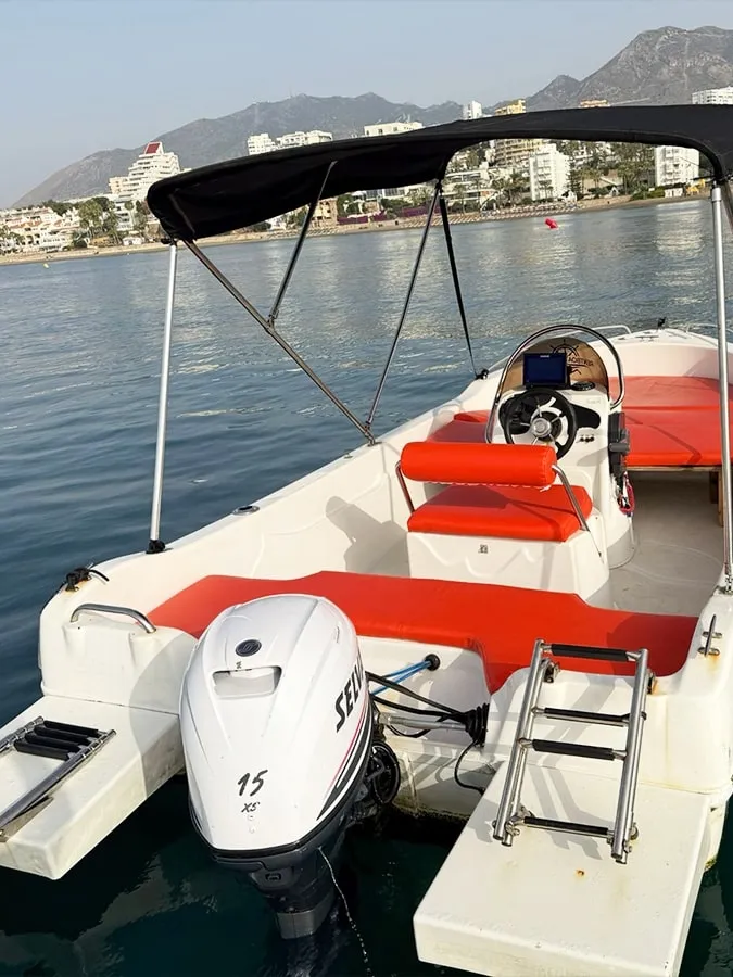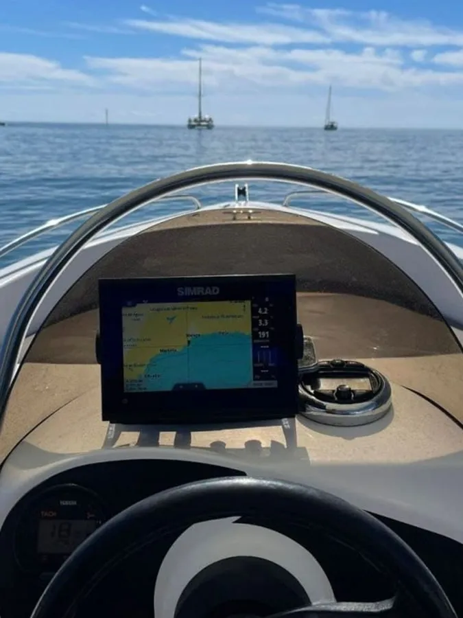 Détendez-vous sur le grand solarium, profitez de l’ombre sous le taud bimini et plongez facilement grâce à la pratique échelle de bain. Profitez d’un système audio Bluetooth pour écouter votre musique préférée, d’un port USB pour charger vos appareils, et pour une expérience encore plus complète, le bateau est équipé d’un sondeur, GPS, ancre et de porte-cannes à pêche pour lancer votre ligne à l’arrêt ou en navigation.