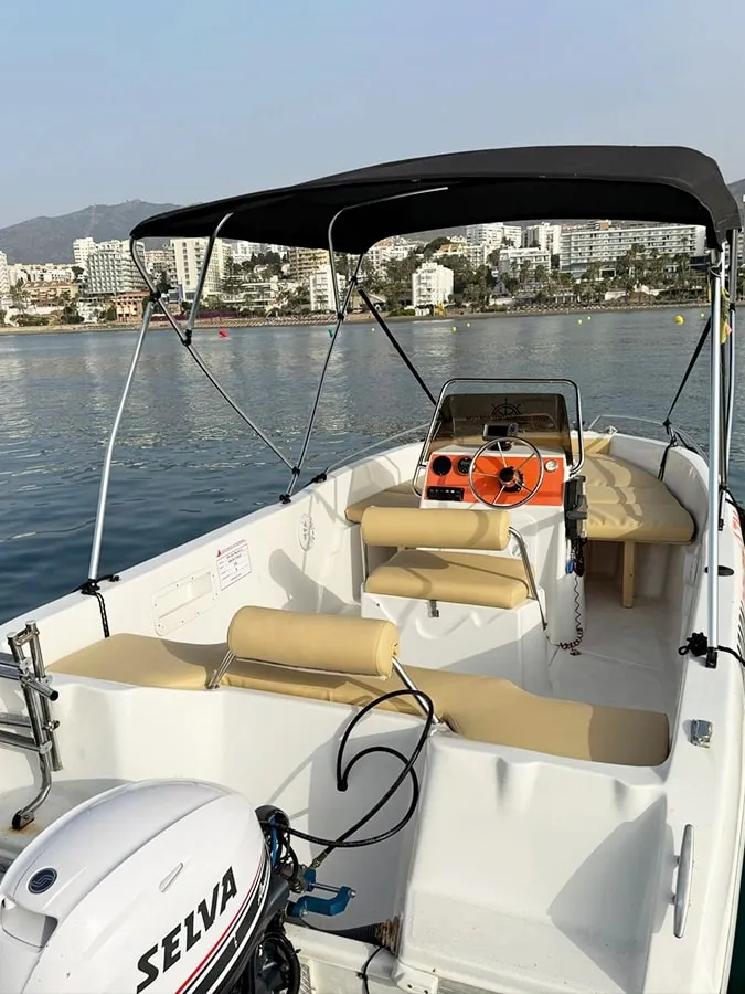 Découvrez le plaisir de naviguer sans permis avec le Voraz 450, avec ses 4,5 m de longueur et un moteur hors-bord Selva 15/40 cv, conçu pour profiter d’une balade relaxante ou d’une journée de pêche. Capacité : 6 personnes. À bord, vous trouverez tout ce dont vous avez besoin pour vous détendre et p… En savoir plus